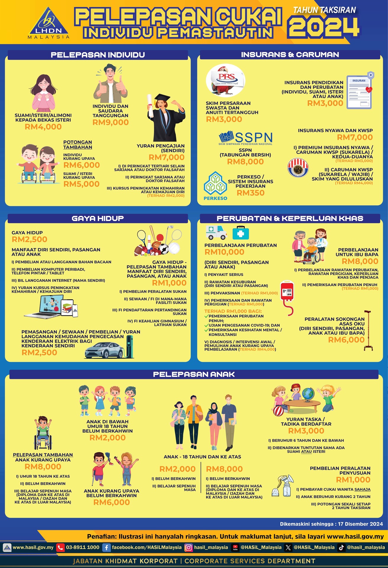 ✅ Pelepasan Anak – Termasuk yuran pendidikan anak, bayaran taska/tadika berdaftar, serta pelepasan tambahan bagi anak kurang upaya.